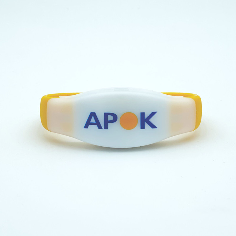 Either the lighting is in fixed mode, i.e. you press a color and the wristband remains lit in that color, or you can choose a flash on/off mode which allows you to light the wristbands only when you press the light function button.