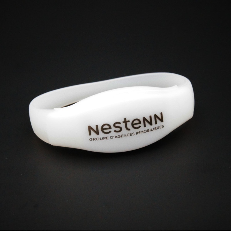 The bracelet case can be customized with a digital print in your brand's colors (from a large quantity only).