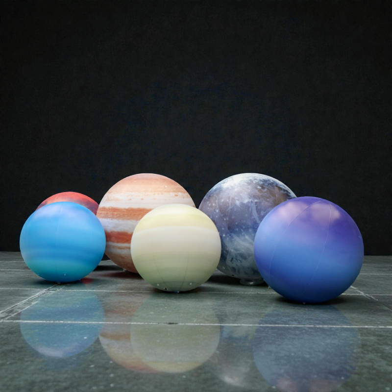 Fabriquées en PVC haute qualité, ces sphères allient robustesse, légèreté et diffusion homogène de la lumière. Chaque modèle est habillé d’un visuel planète (Terre, Lune, Jupiter ou création graphique sur mesure), offrant un rendu réaliste ou artistique, de jour comme de nuit.